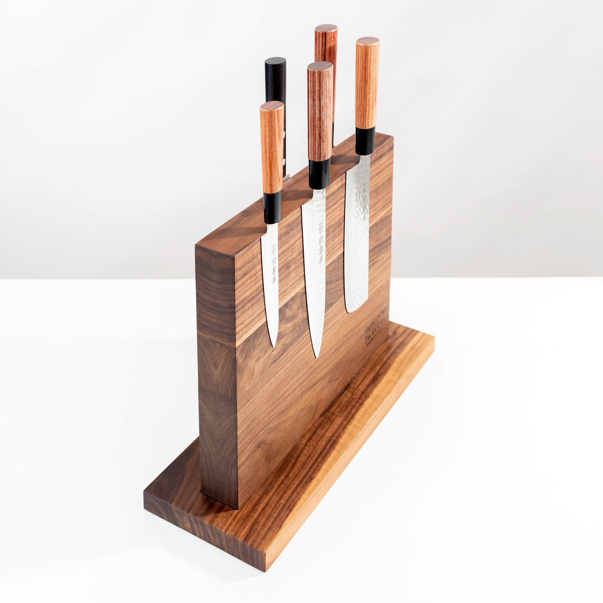Unlike mass-produced countertop knife holders, our Walnut magnetic knife block is a true work of art. Each piece is handcrafted in the USA using authentic lumber construction to create a durable, eye-catching design. The result? A knife holder that isn’t just functional but a stunning centerpiece in your kitchen. No cheap veneers or imitation wood—just solid, beautifully crafted hardwood built to last.